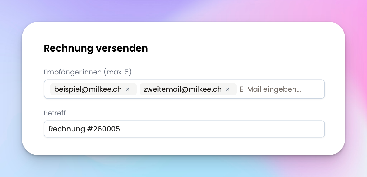 In MILKEE kannst du deine Rechnungen und Offerten direkt aus der Software per E-Mail an deine Kund:innen senden.