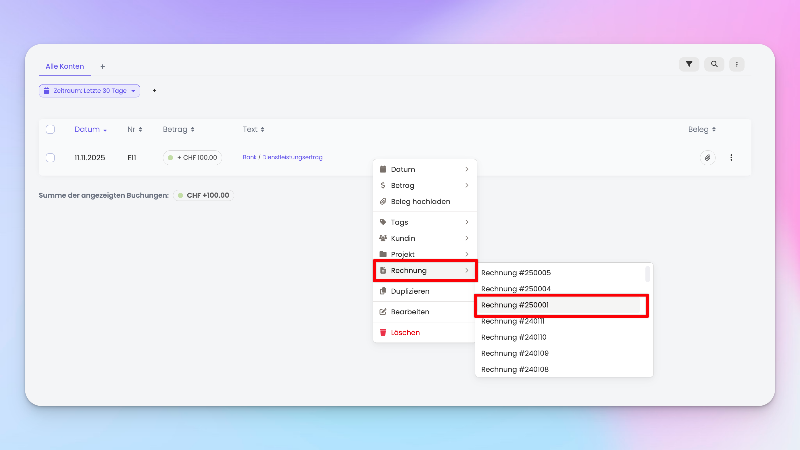 - In dem du die Buchung bearbeitest und die Rechnung verknüpfst